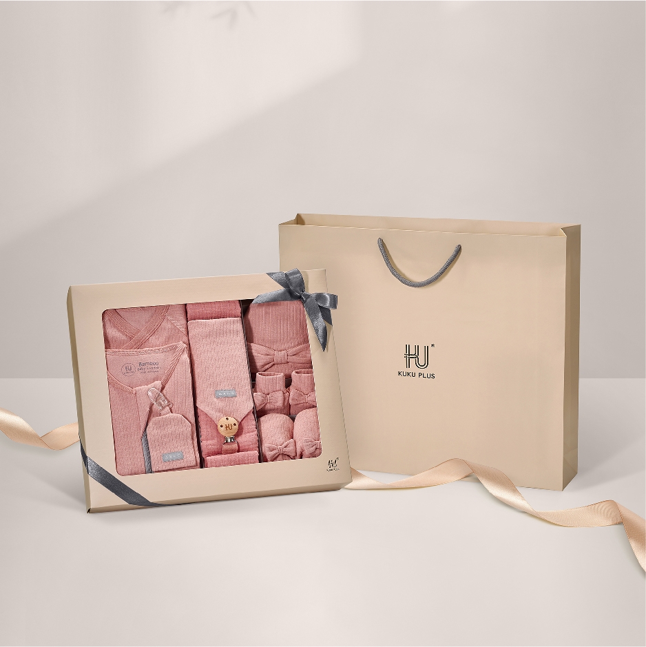 KUKU 竹纖羅紋成長懶人包巾禮盒16件-自然粉
