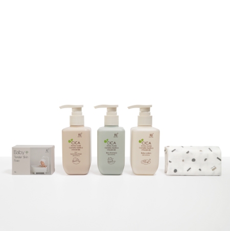 內容物:洗髮沐浴乳250ml x1、洗髮精250ml x1、乳液250ml x1、澡巾x1、潔膚皂x3