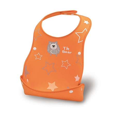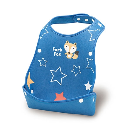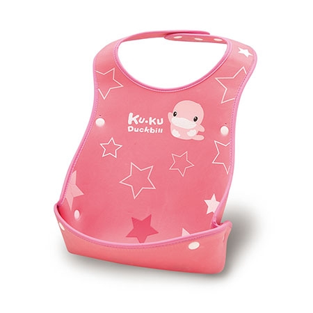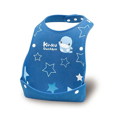 立體凹槽─ 挺立的寬大口袋可輕鬆收集食物殘渣,避免弄髒寶寶衣服。