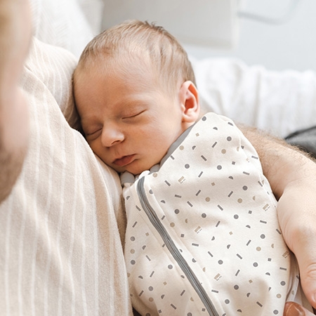 1.新生兒使用,請先扣上袖釦,再拉開拉鍊將寶寶放入包巾中