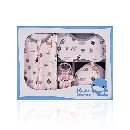 懶人包巾x1入、嬰兒帽x1入、造型圍兜x1條、護手套x2隻、護腳套x2隻,共7件組