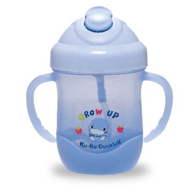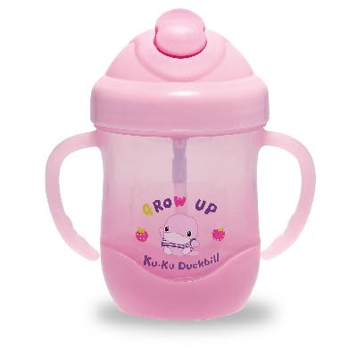 酷咕鴨酷樂喝水杯,下壓吸管蓋,吸管即可自動彈出,並且以35度角的人體工學角度,讓寶寶以最舒適自在的角度喝水,搭配自動吸管,讓寶寶不管哪個角度,都能輕鬆喝到水,不需雙手接觸吸管,也更加衛生安全,輕輕一壓即可關上,讓媽媽輕鬆使用。雙耳握把設計,可訓練寶寶握的能力,讓寶寶在生活中輕鬆學習。