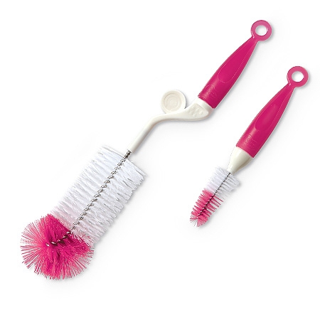 1.將奶瓶刷或奶嘴刷放入奶瓶或奶嘴內,360度旋轉刷洗,即可輕鬆清洗奶瓶。