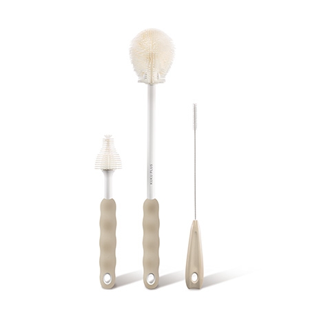 採用食品級矽膠,刷毛柔軟不易刮傷奶瓶及奶嘴。刷頭設計可90°彎曲,徹底貼合不易清洗的死角;可拆式刷頭方便清洗和替換,奶嘴、配件刷幫助細部清洗。
