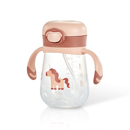 雙耳握把方便寶寶練習抓握並獨立喝水,搭配360度無死角自動吸管,讓寶寶不論站、坐、躺任一姿勢皆可任輕鬆吸吮。