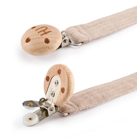 櫸木夾具的簡約質感搭配多個顏色選擇,特別適合追求品味的媽咪。金屬扣具耐用堅固可輕鬆夾住衣服不會脫落;織帶觸感柔軟不傷肌膚,穿繩設計適用大部分安撫奶嘴或固齒器玩具。