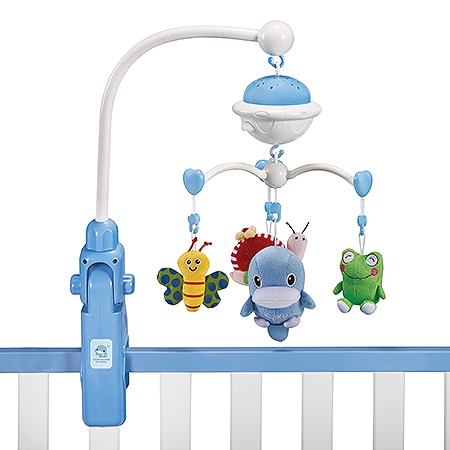 頂部的多彩星空投射燈光裝置,可安撫寶寶睡眠情緒。
