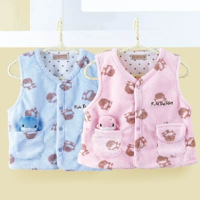 俏皮暖暖背心雙層絨毛布剪裁製作,柔和的色系、保暖舒適的材質,搭配立體酷咕鴨穿著更有造型,背心款式讓寶寶活動好方便。