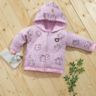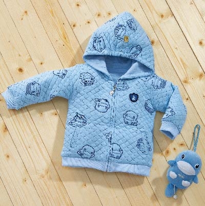 輕巧保暖連帽外套,棉柔緹花舖棉菱格布搭配酷咕鴨圖案,格調率性的Style,是寶貝秋冬出遊必備款外套。